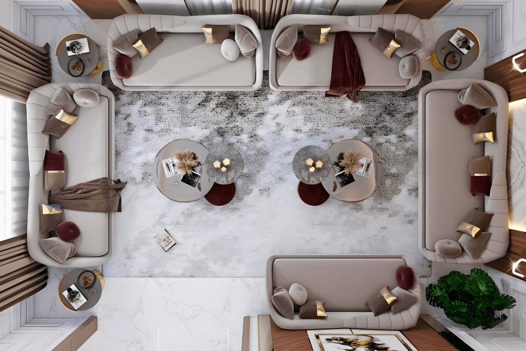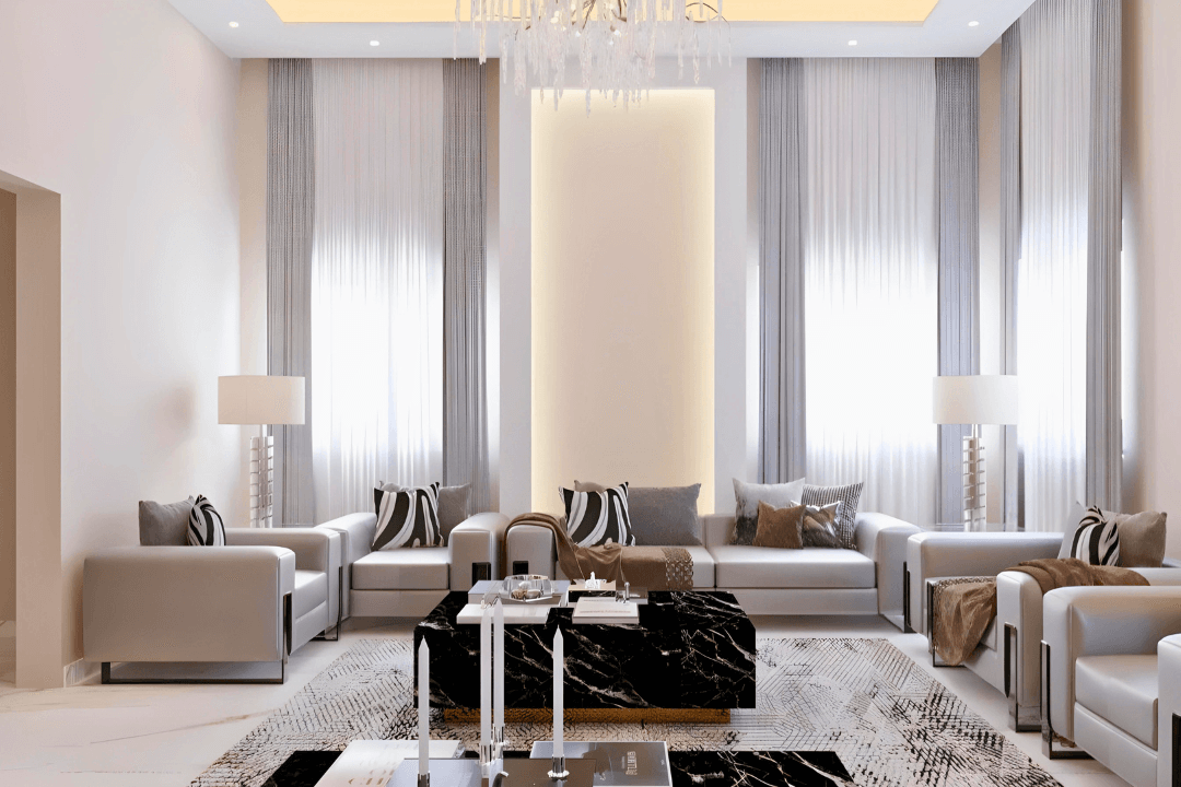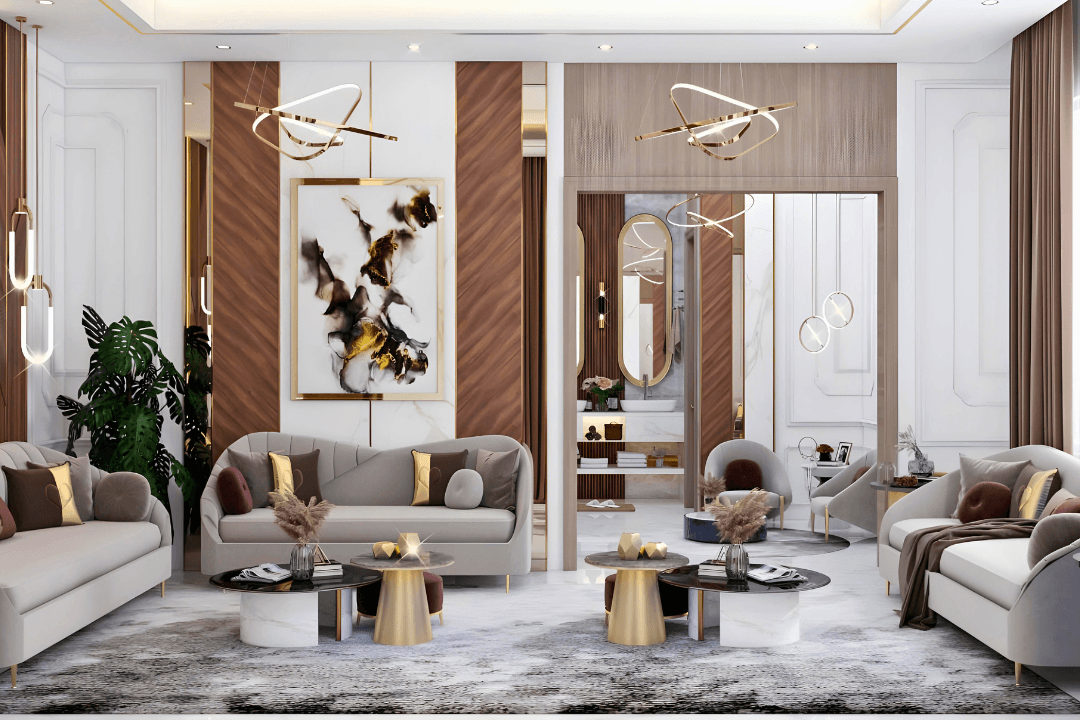 اتصميم الداخلي ، تصميم الإضاءة ، أنظمة التكييف المتكاملة، الأثاث واقتراح المواد المناسبة، ارضيات ساراميك ايبوكسي و ارضيات خشبية تركيب الواجهات والقواطع ، ديكورأسقف